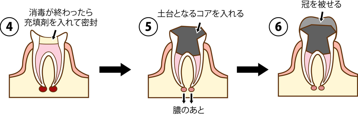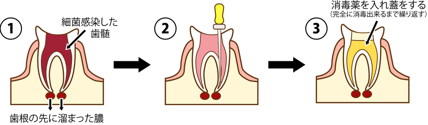 根管治療は、歯の神経などが通る根管内の感染した組織を取り除き、清掃する治療です。精密さが求められる治療であり、歯の寿命を左右します。