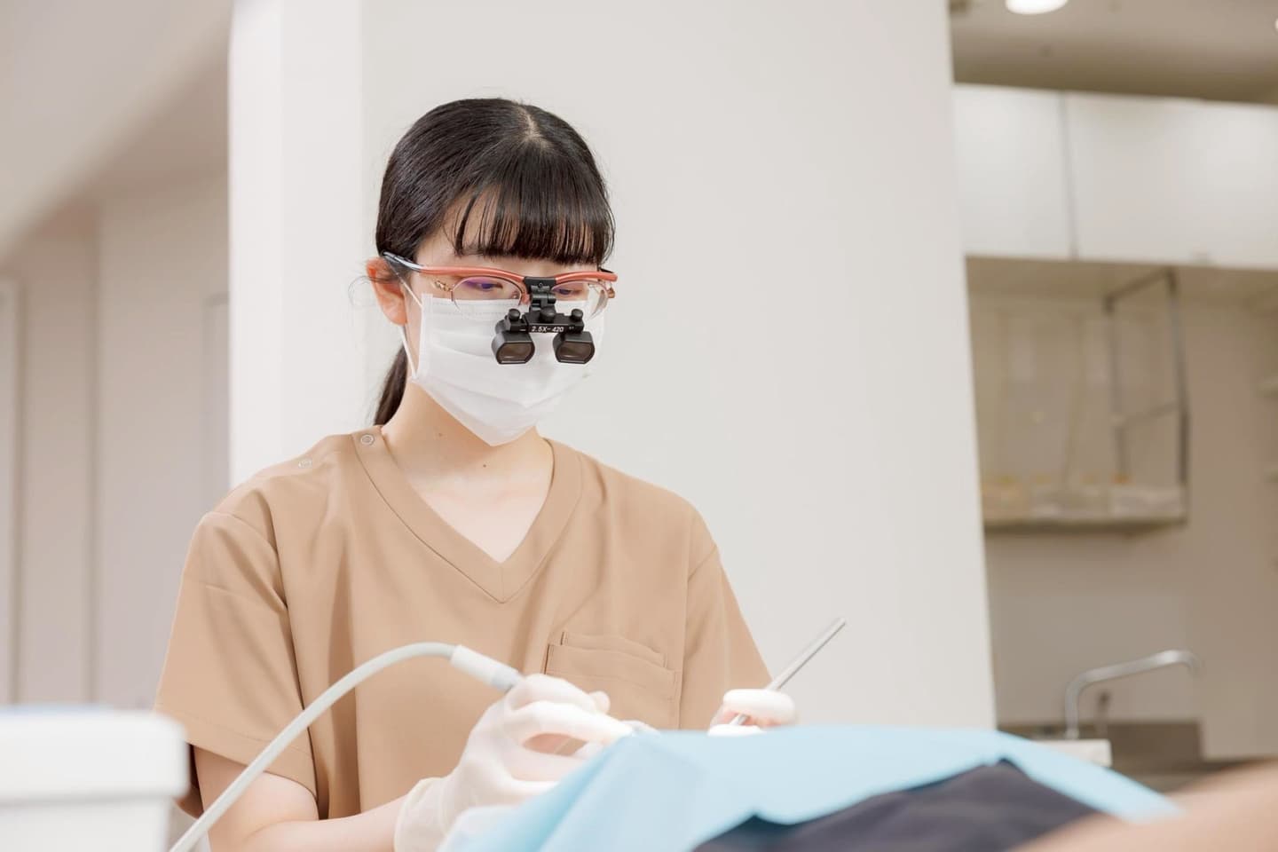 当院では、歯科医師だけでなくスタッフも拡大鏡を活用し、より高品質な治療を提供しています。