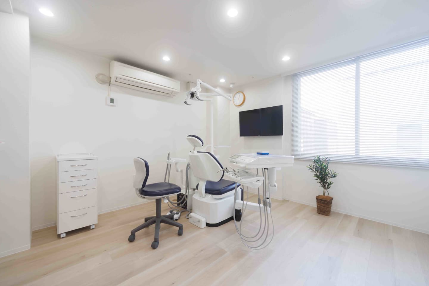 パーテーションで区切られた半個室空間で、プライバシーに配慮した診療を行います。口腔外バキューム設置により、院内の空気もクリーンに保ちます。