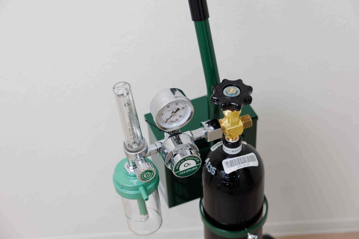 患者様の安全を第一に考え、酸素ボンベなどの救急設備を完備しています。